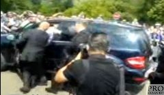 Инцидент случился 25 июня в Березовой роще в поселке Мирный, куда на главный майдан Сабантуя приехал президент России. В ожидании приезда Дмитрия Медведева несколько тысяч казанцев вышли на встречу кортежа. Подъехавшие машины сразу попали в окружение еле сдерживаемых полицией граждан. За рулем одного из джипов сидел сам Дмитрий Медведев. Президент слегка растерялся, забыв, судя по всему, поставить автомобиль на parking. В результате машина угрожающе двинулась прямо на толпу. Заметившие это сотрудники безопасности, стоящие в оцеплении, тут же встали на ее пути и уперлись в капот. Дмитрий Медведев также мгновенно среагировал и быстро переставил рукоятку переключения передач в нужное положение...